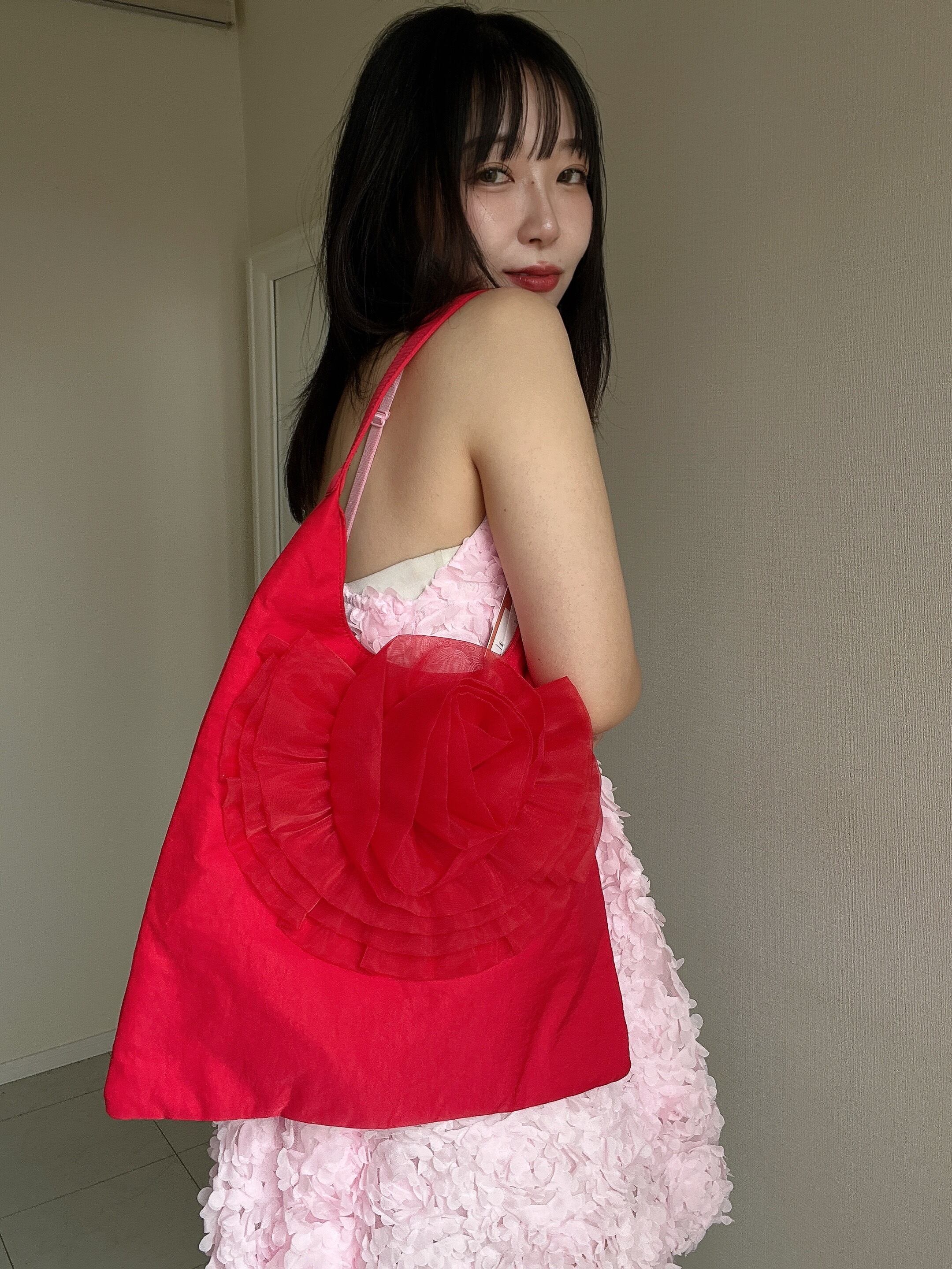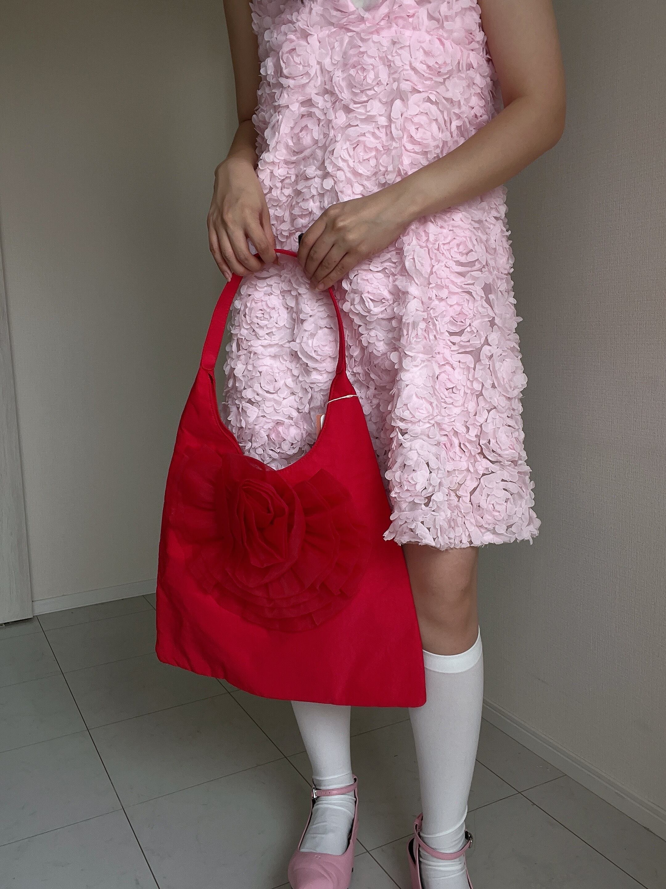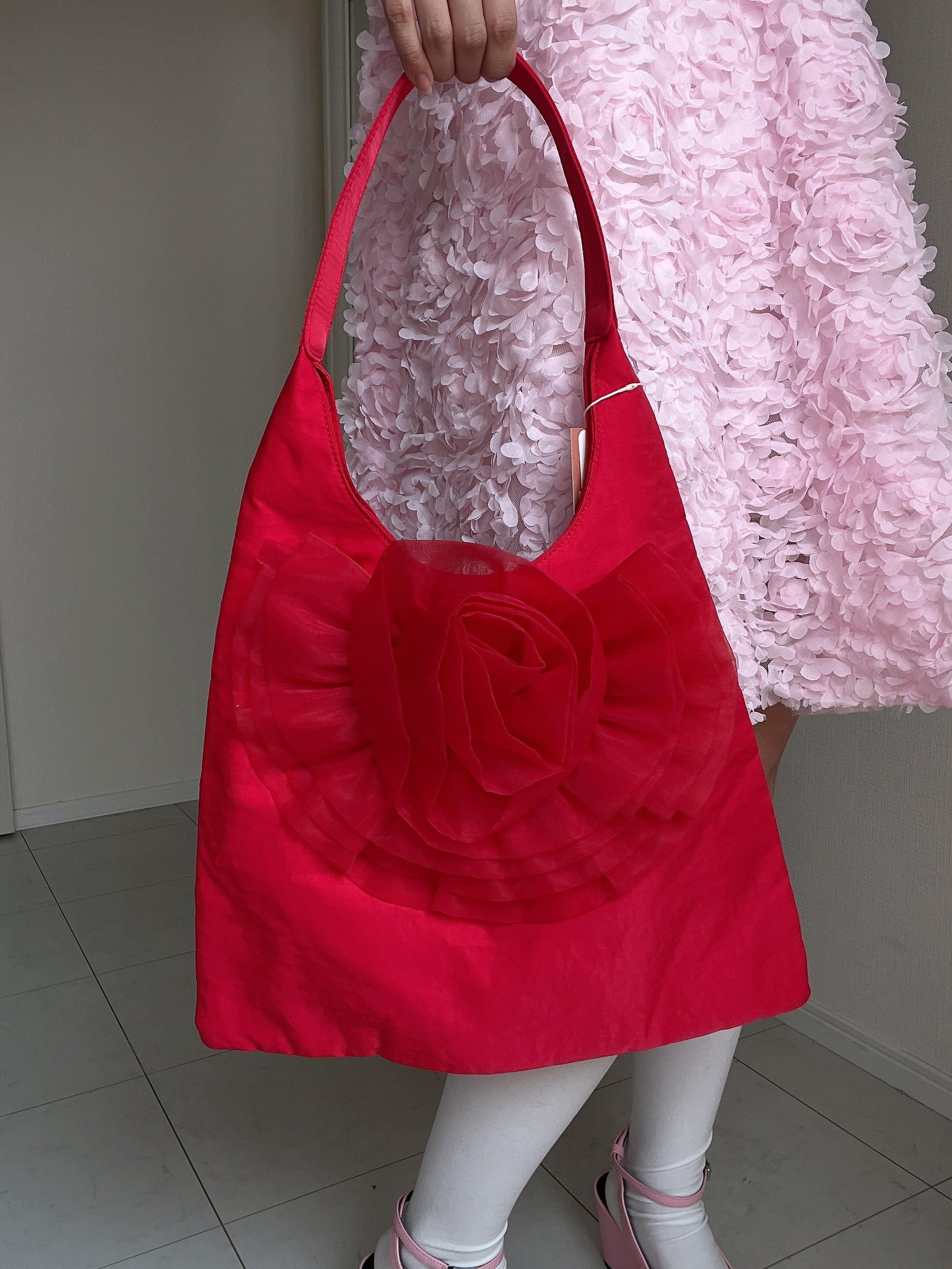 ビックフラワーモチーフが目を惹く肩掛けトートバック。