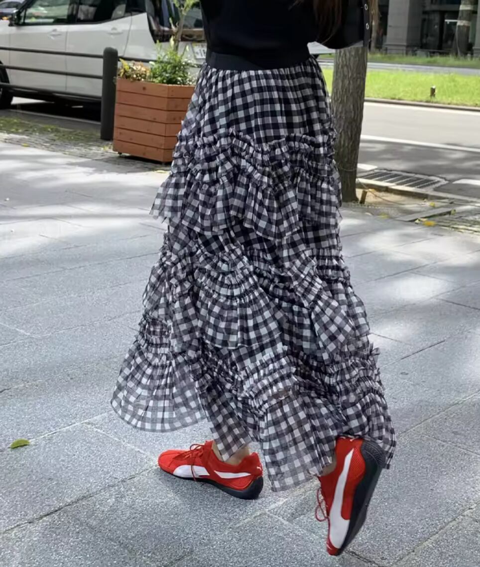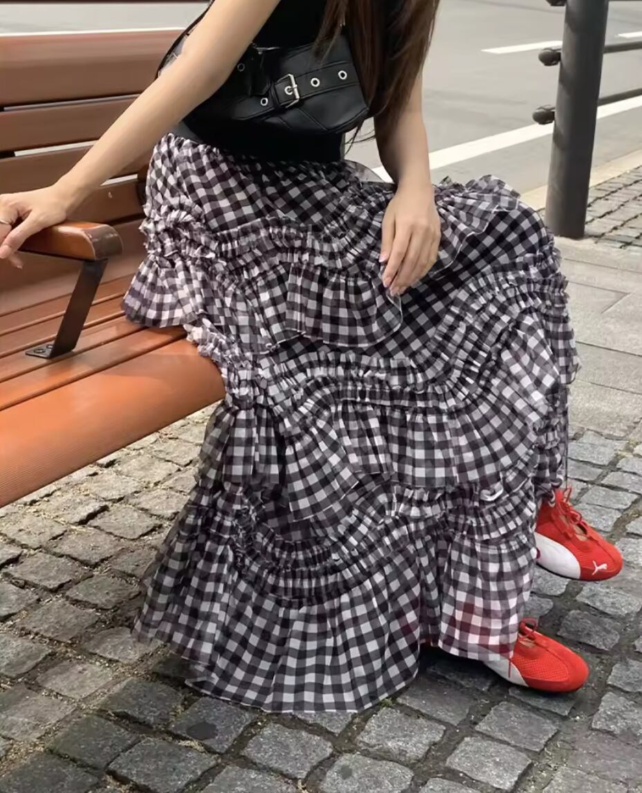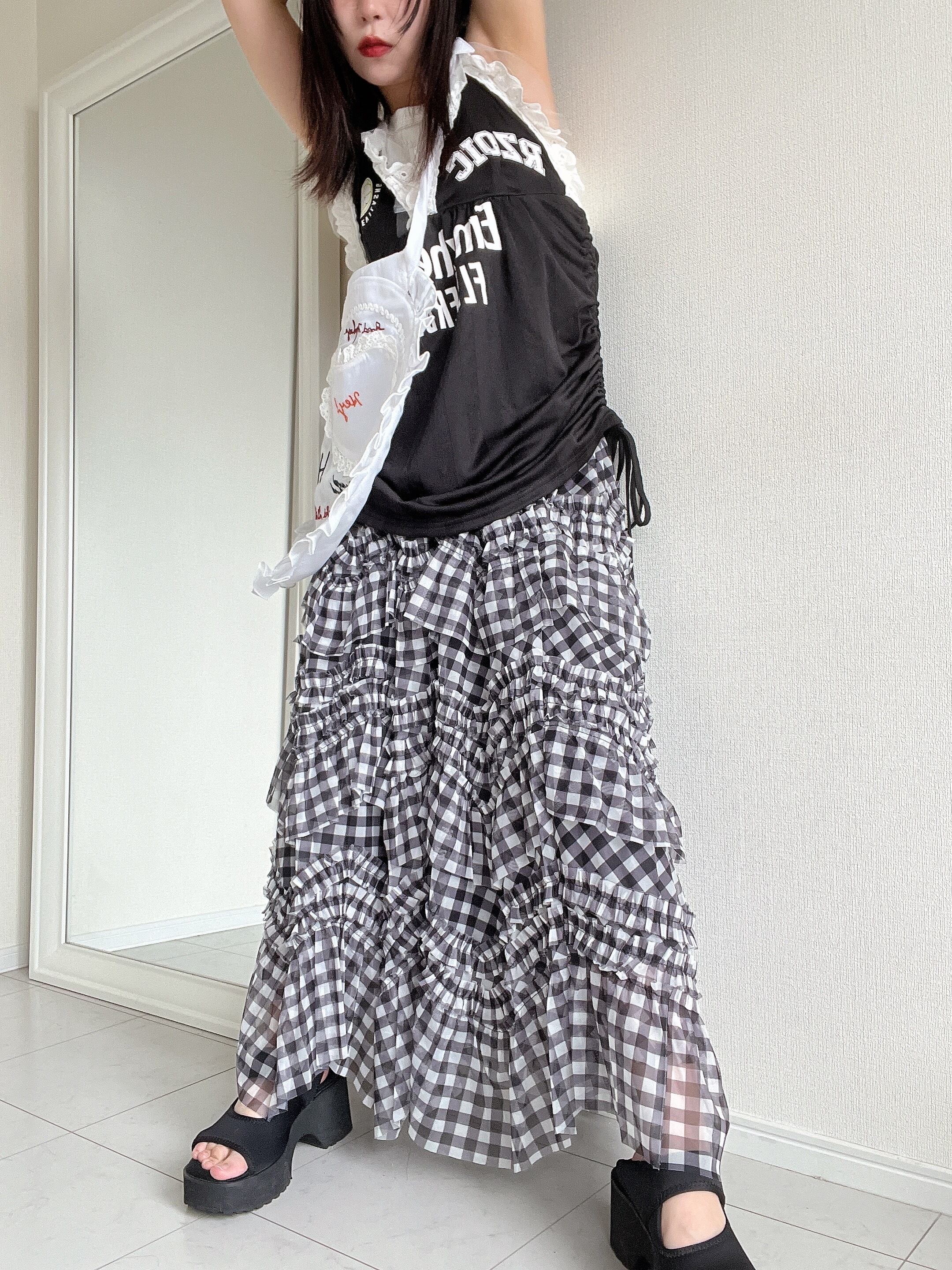 ビターな色味と、とろけるような甘さのギンガムスカート。