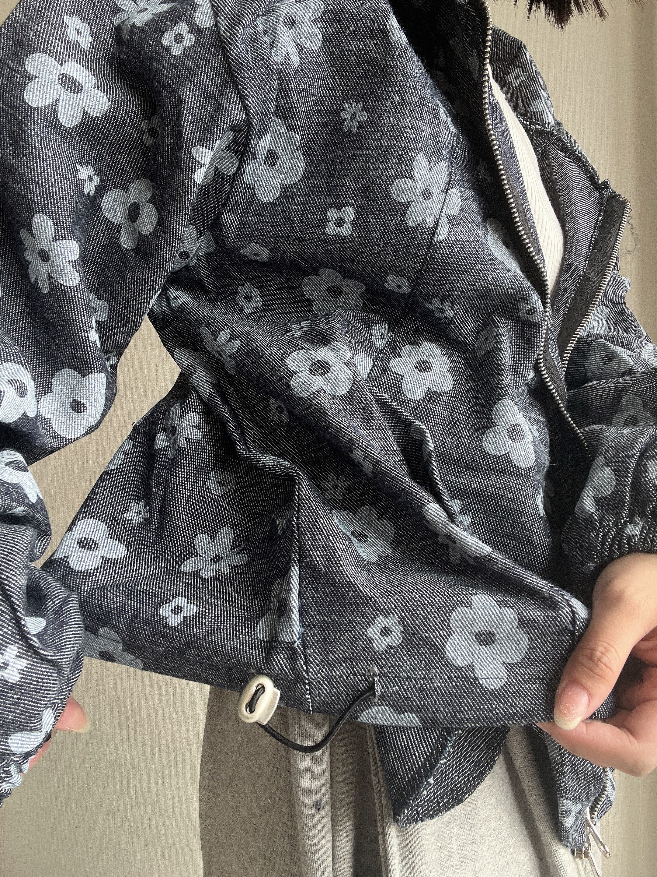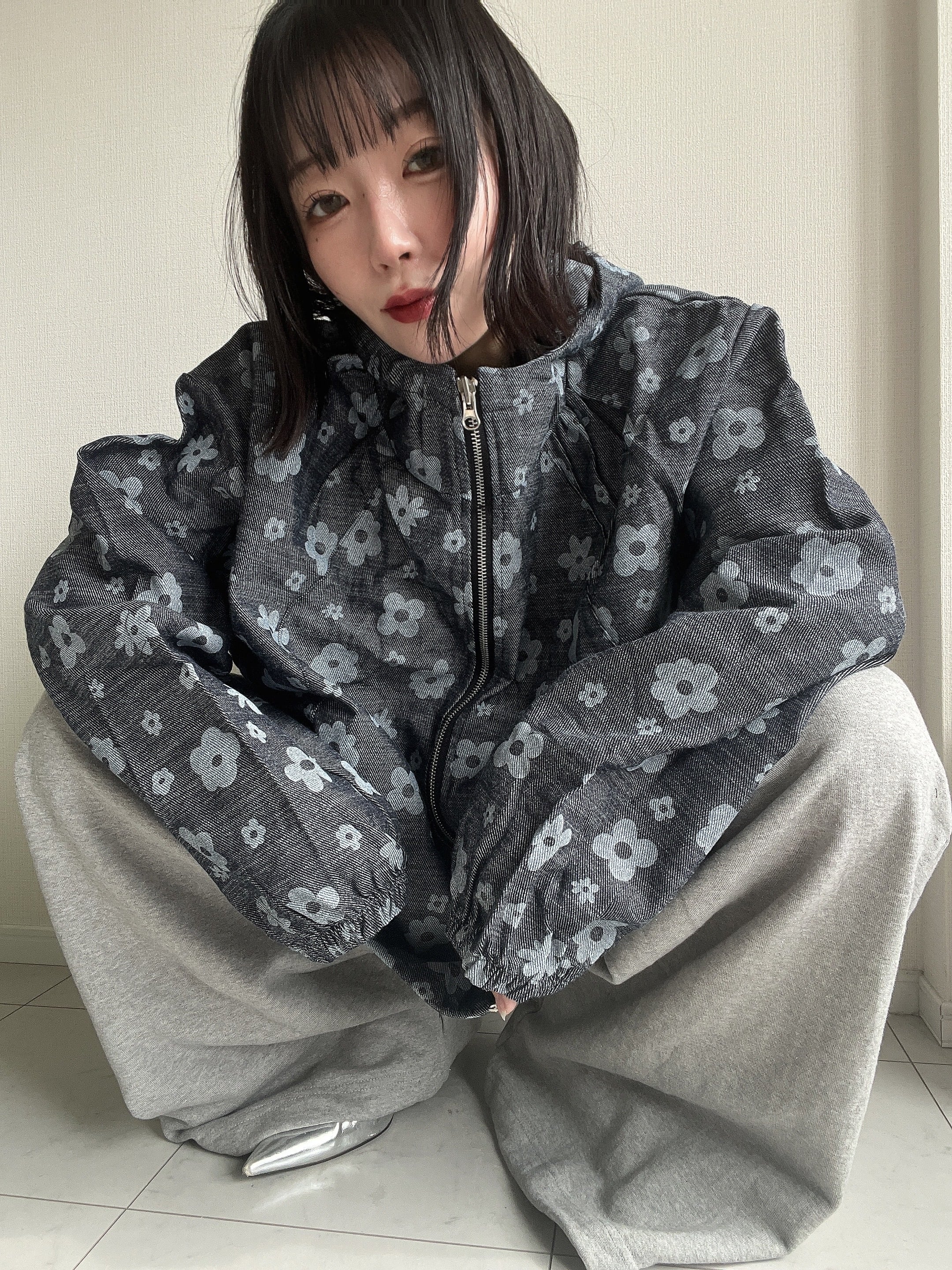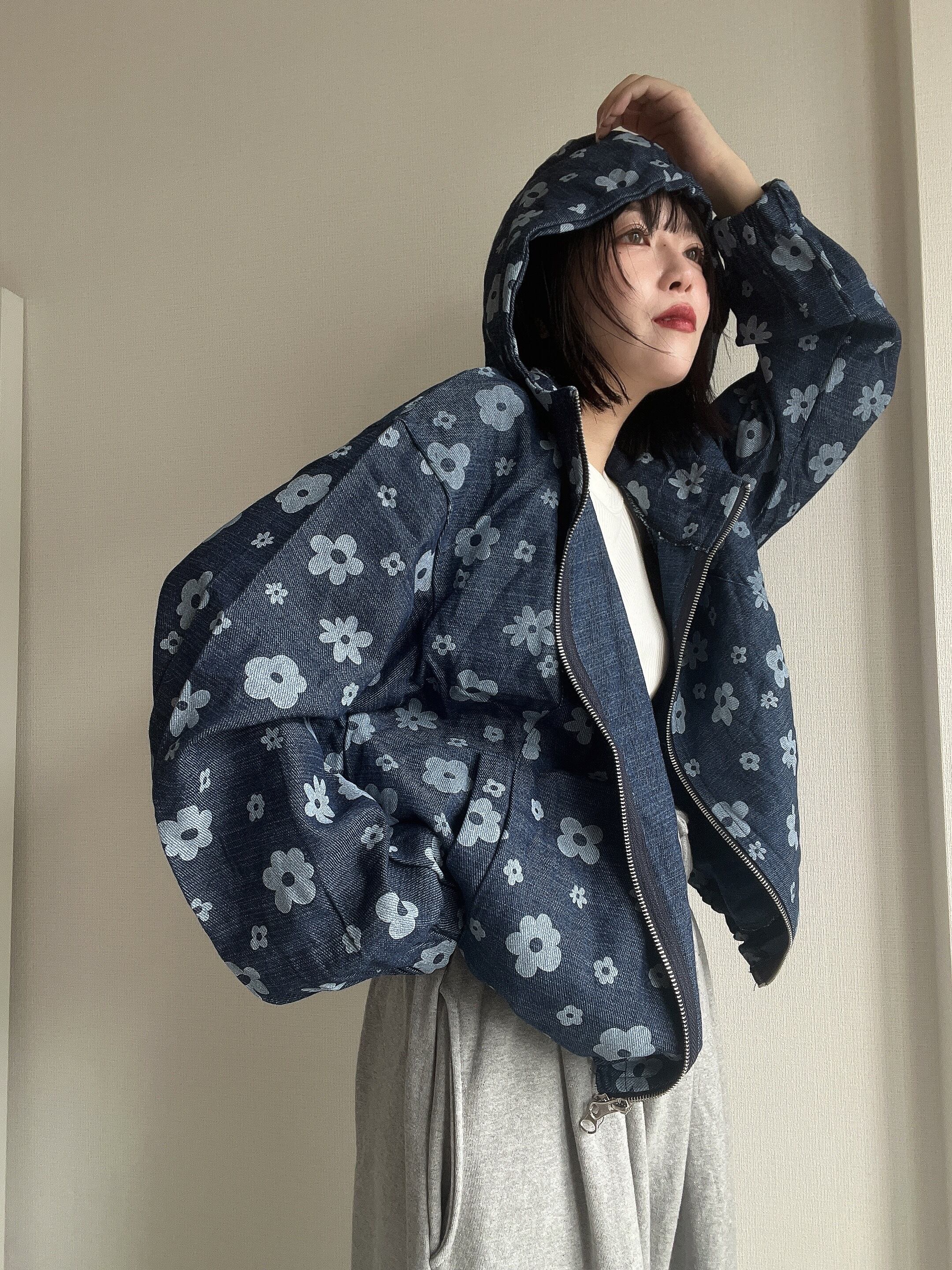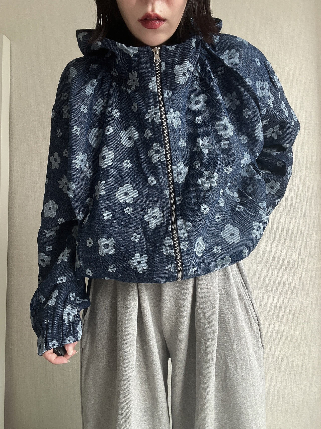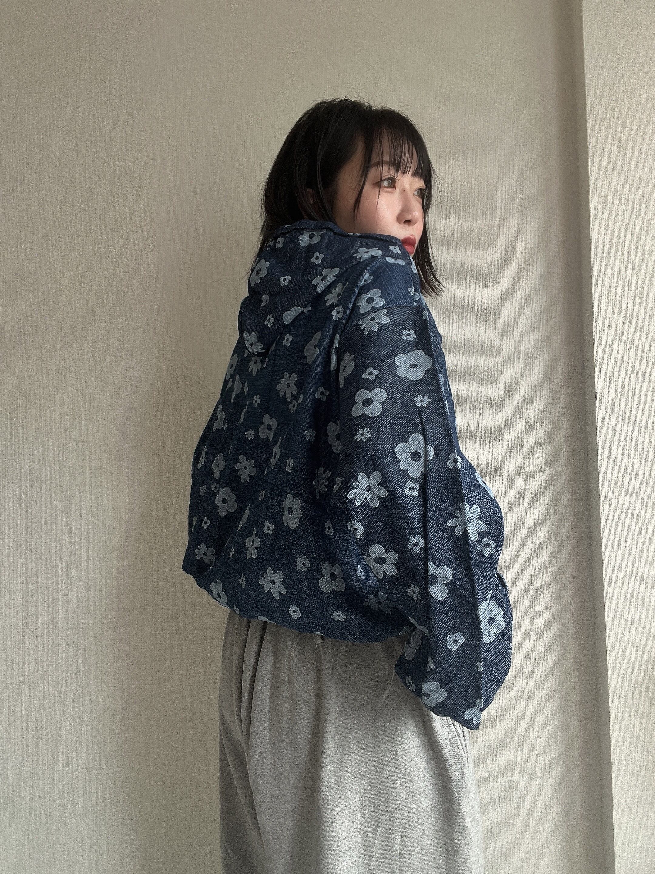 大ぶりなお花柄をあしらったデニムジャケット 「花よりデニム」。