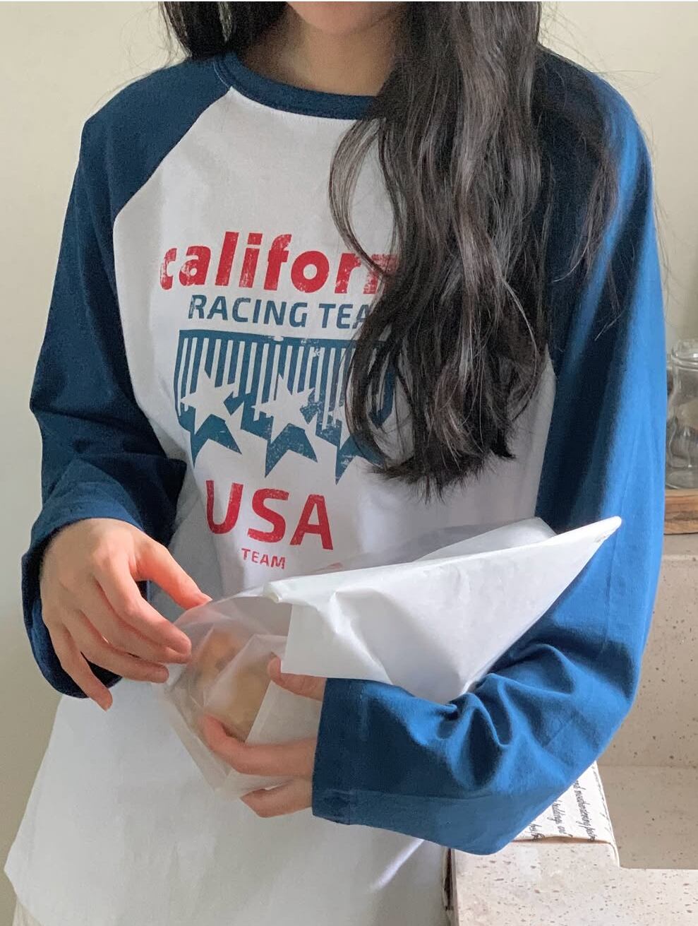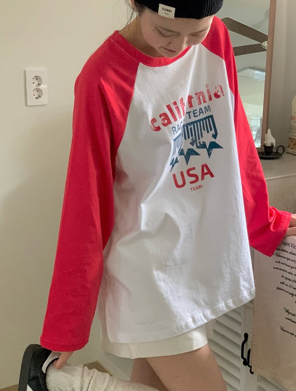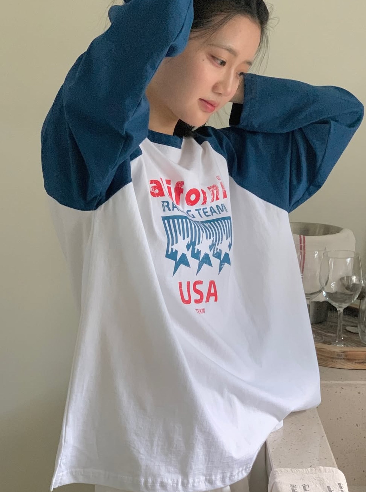 爽やかな配色とラグランスリーブで、抜け感のあるスタイルを楽しめるカジュアルトップス。