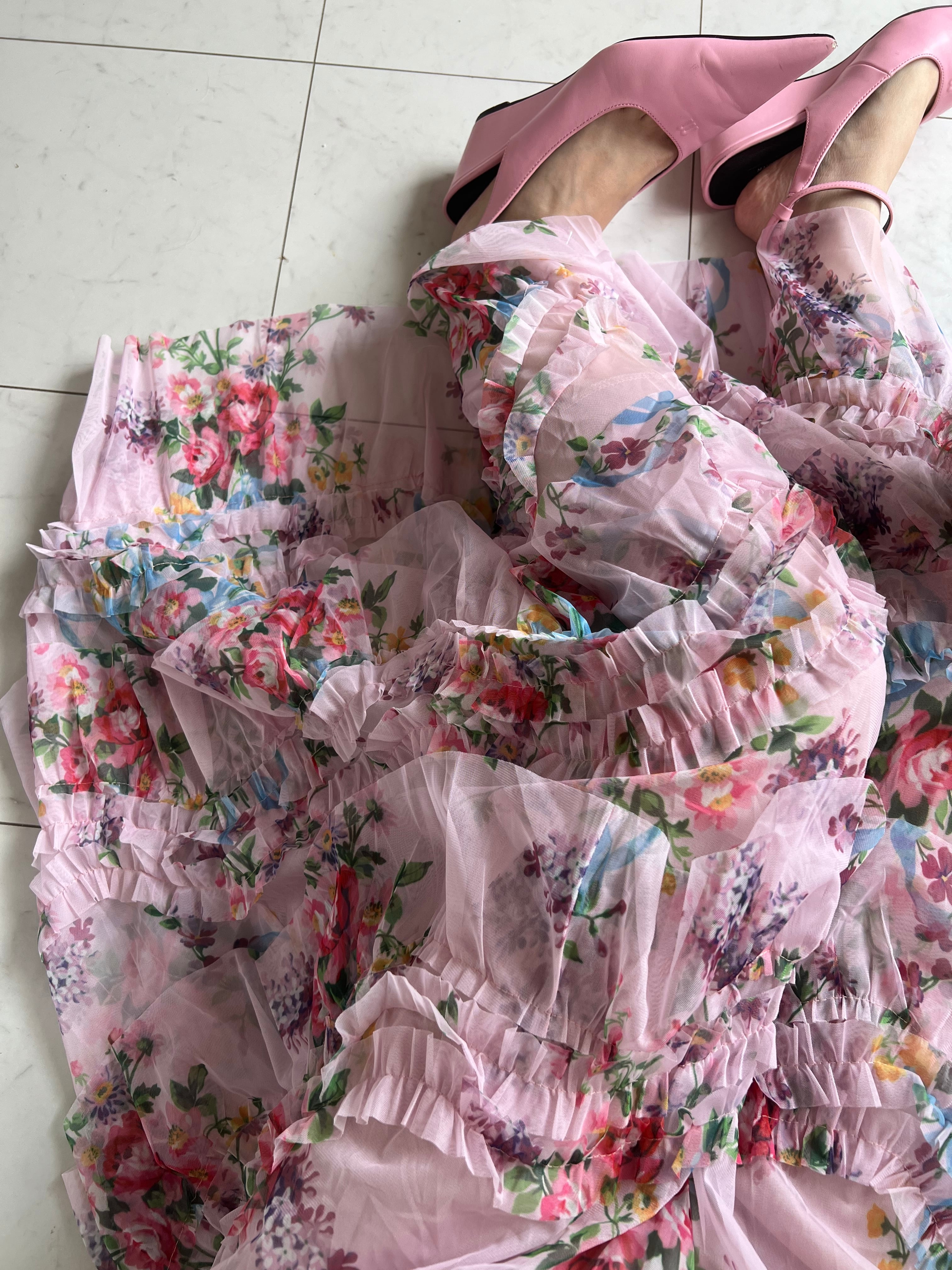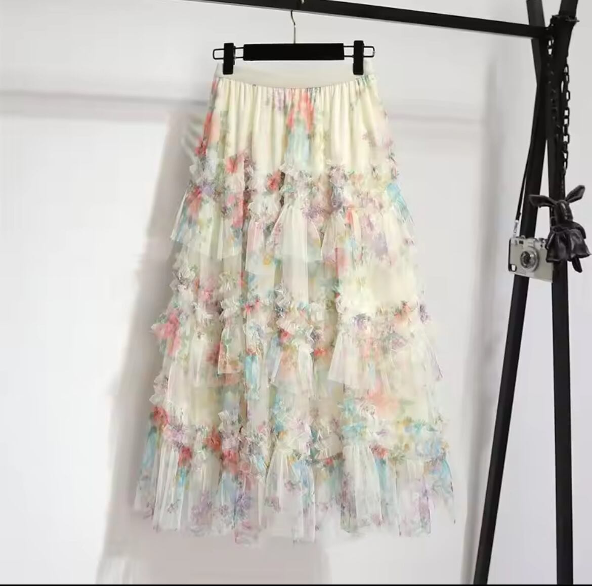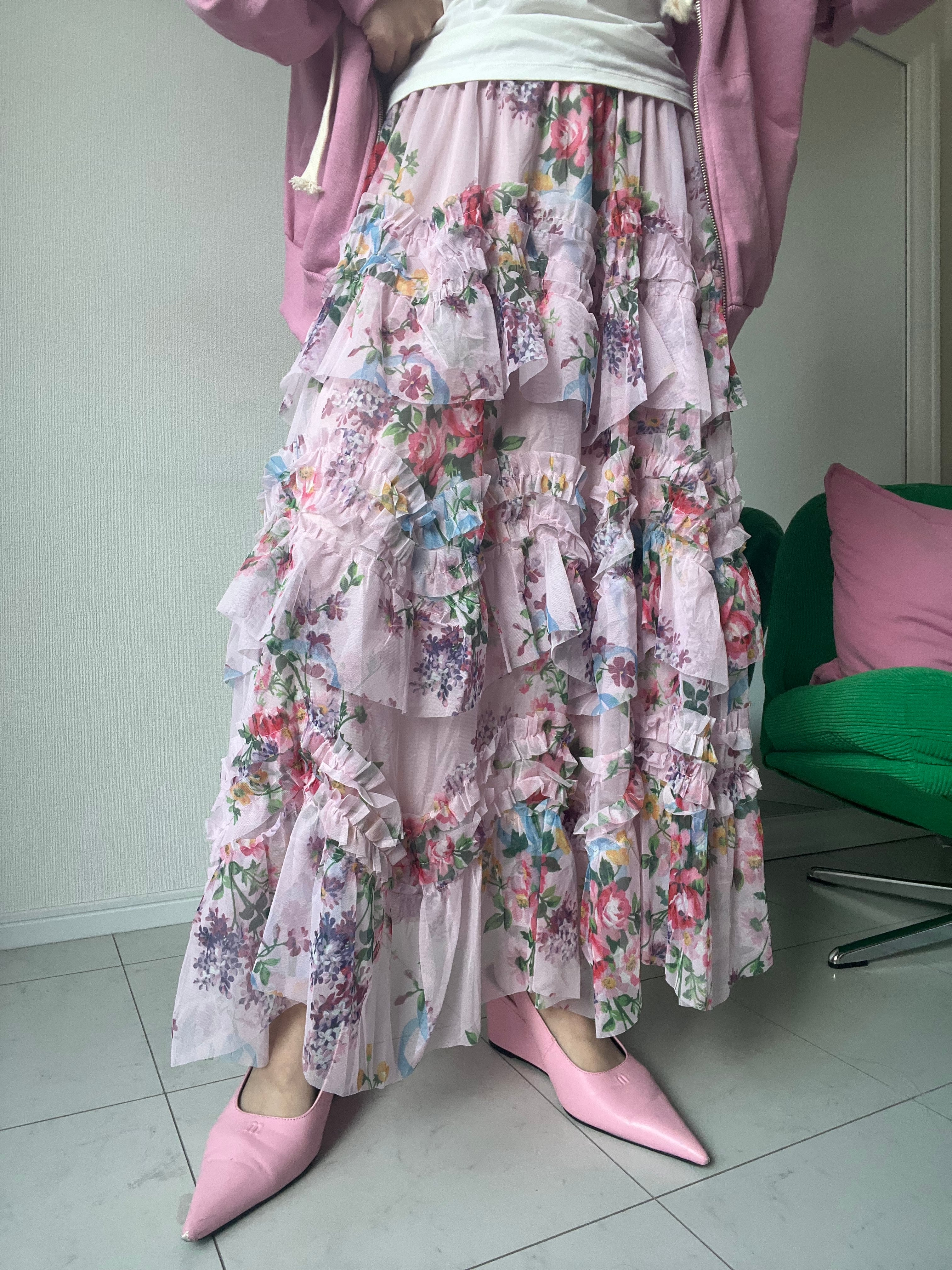 幾重にも重なるフリルに、色とりどりの花々が咲き誇る「百花繚乱」スカート。