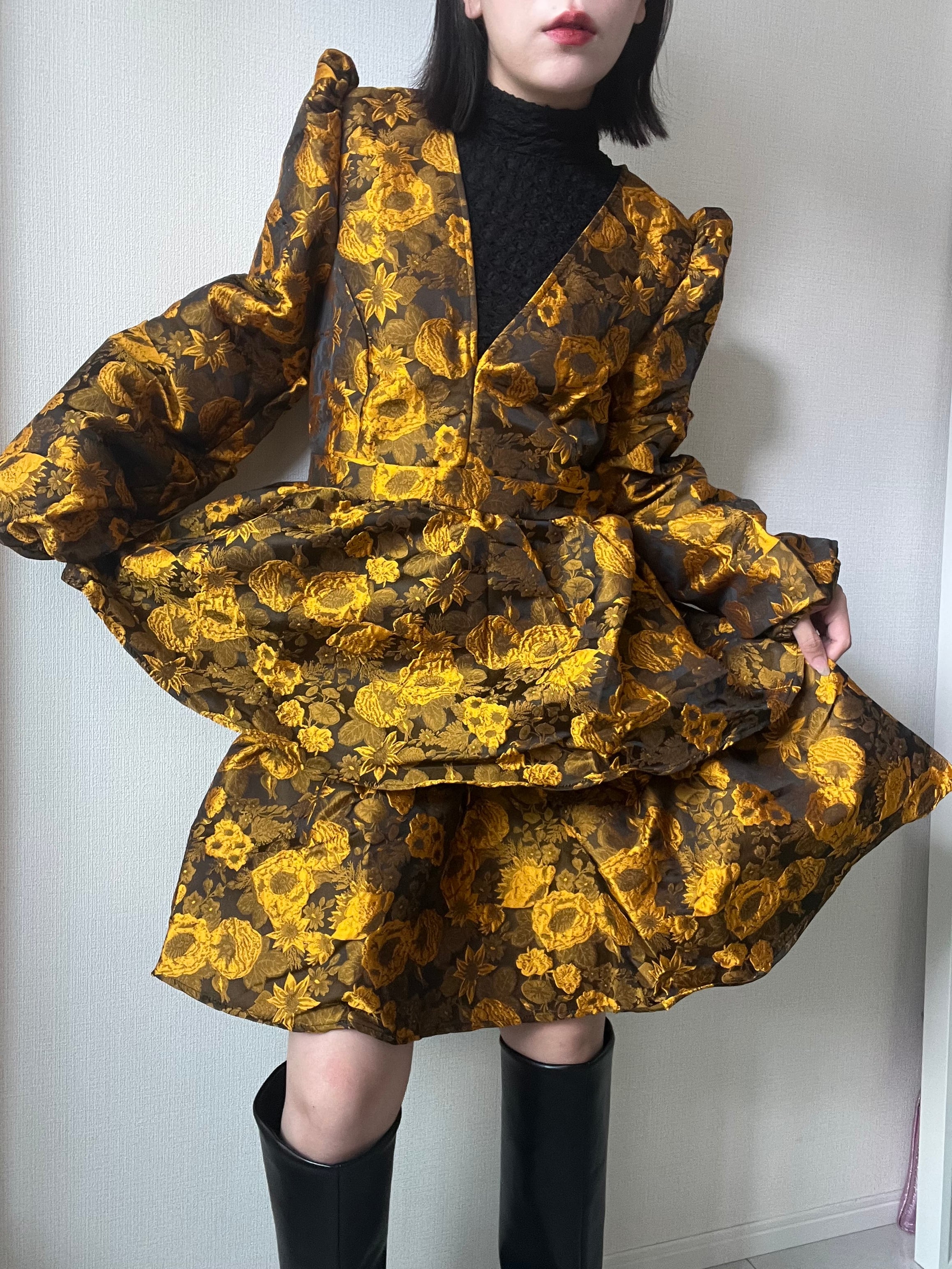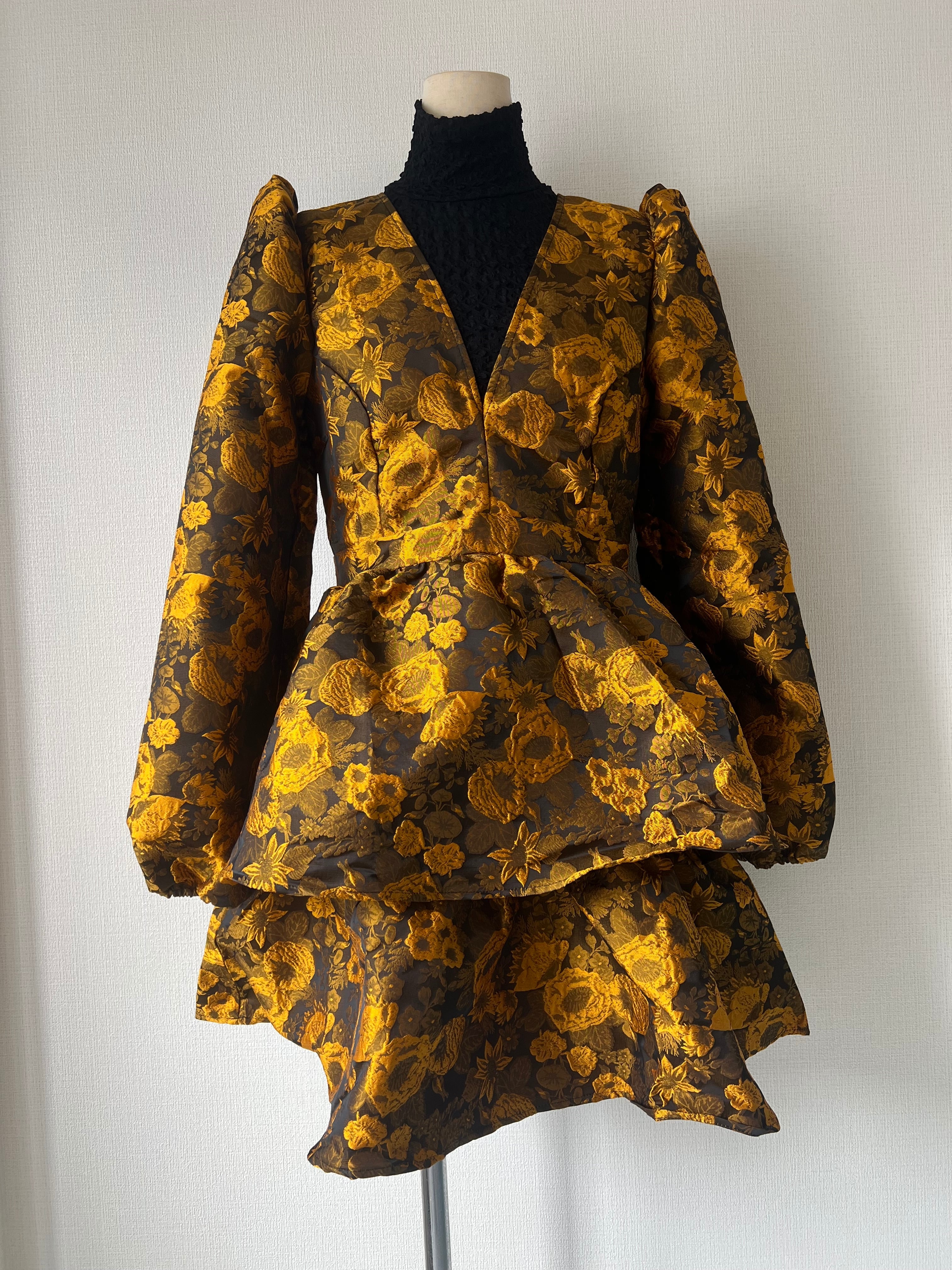 まるで黄金の花々が夜空に咲き誇るような、特別な存在感を放つワンピース。