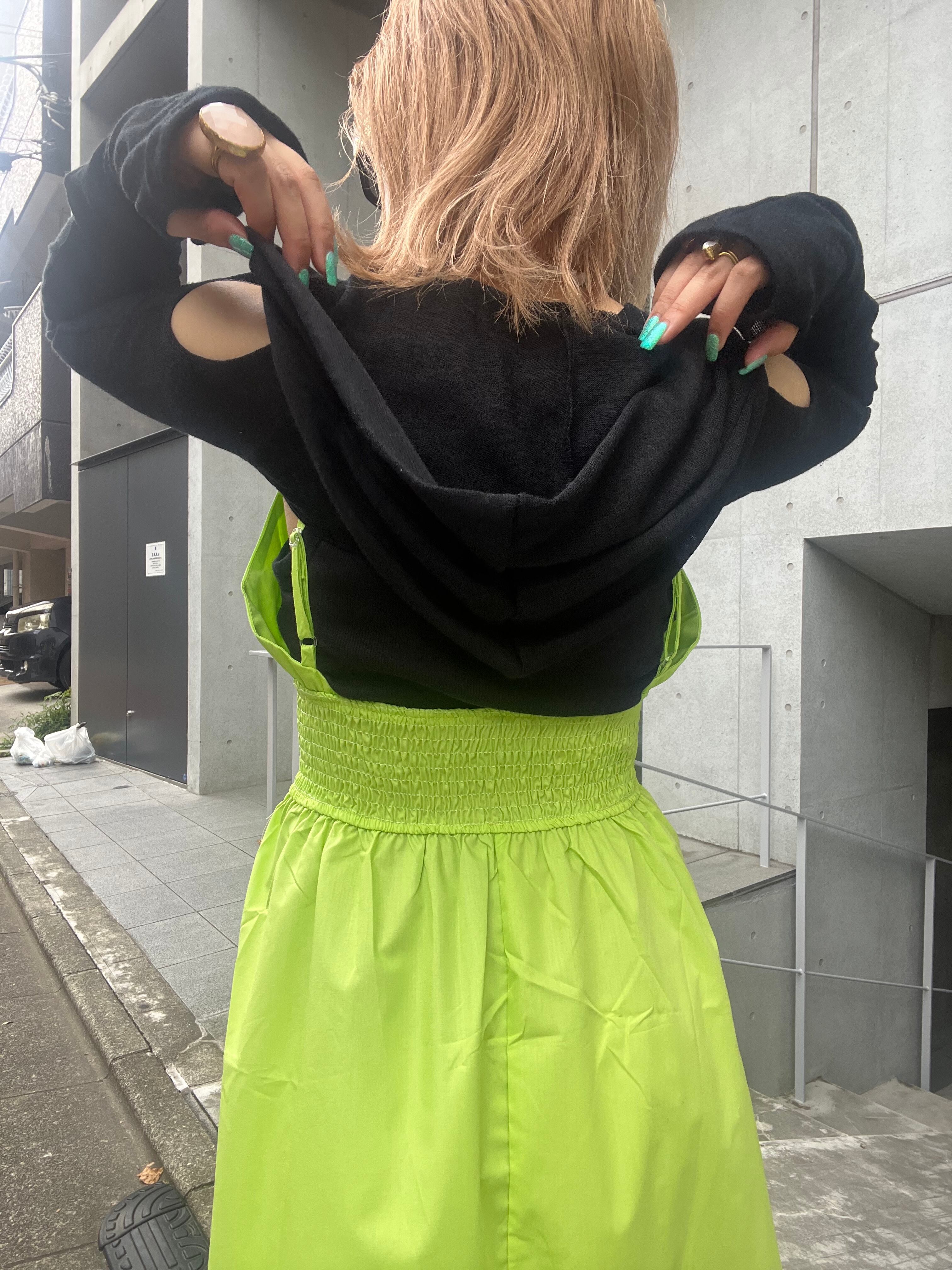 夏のコーデを秋へと変えてくれるアームニットは、かわいい工夫がたくさん詰まっています。