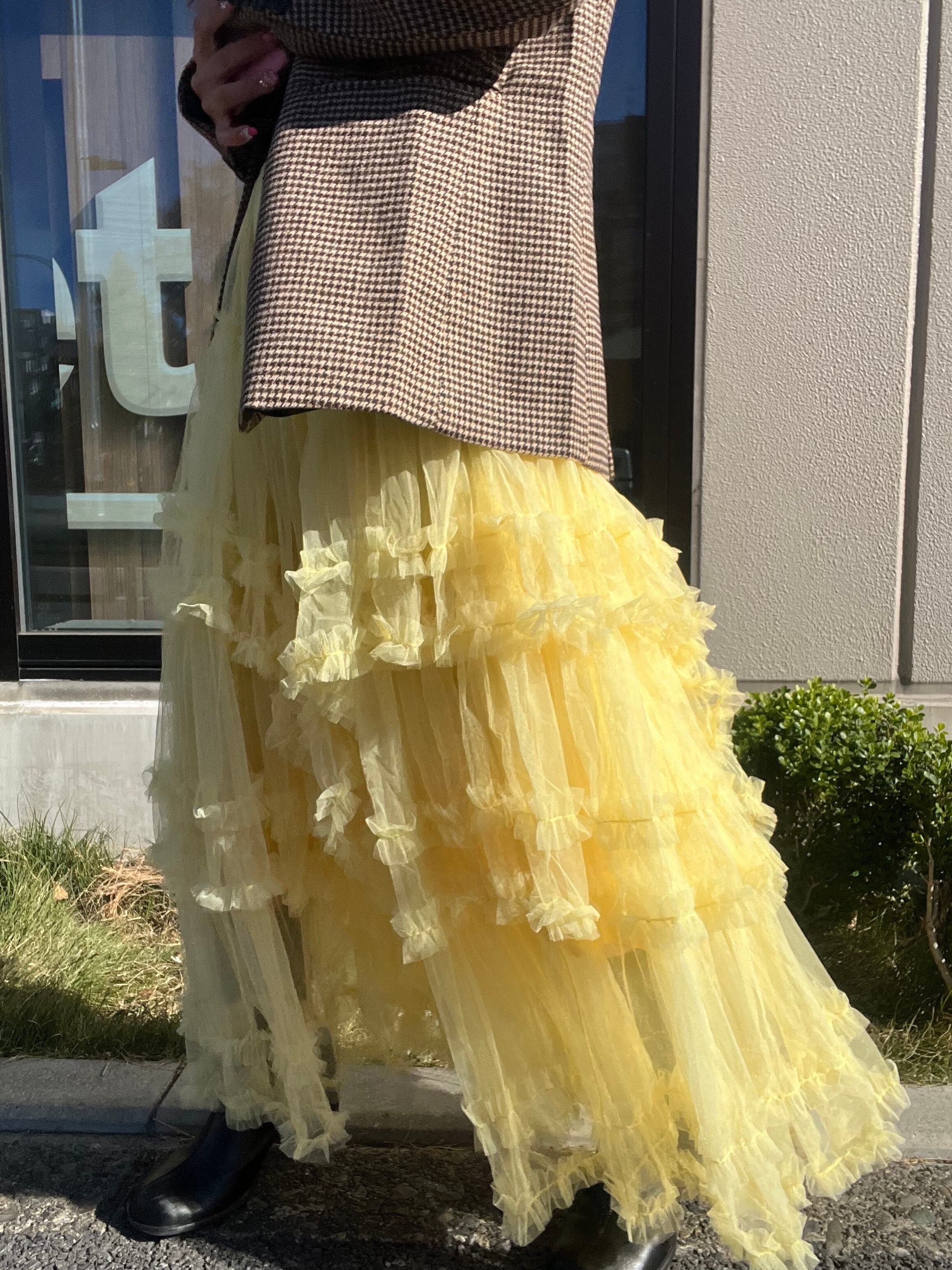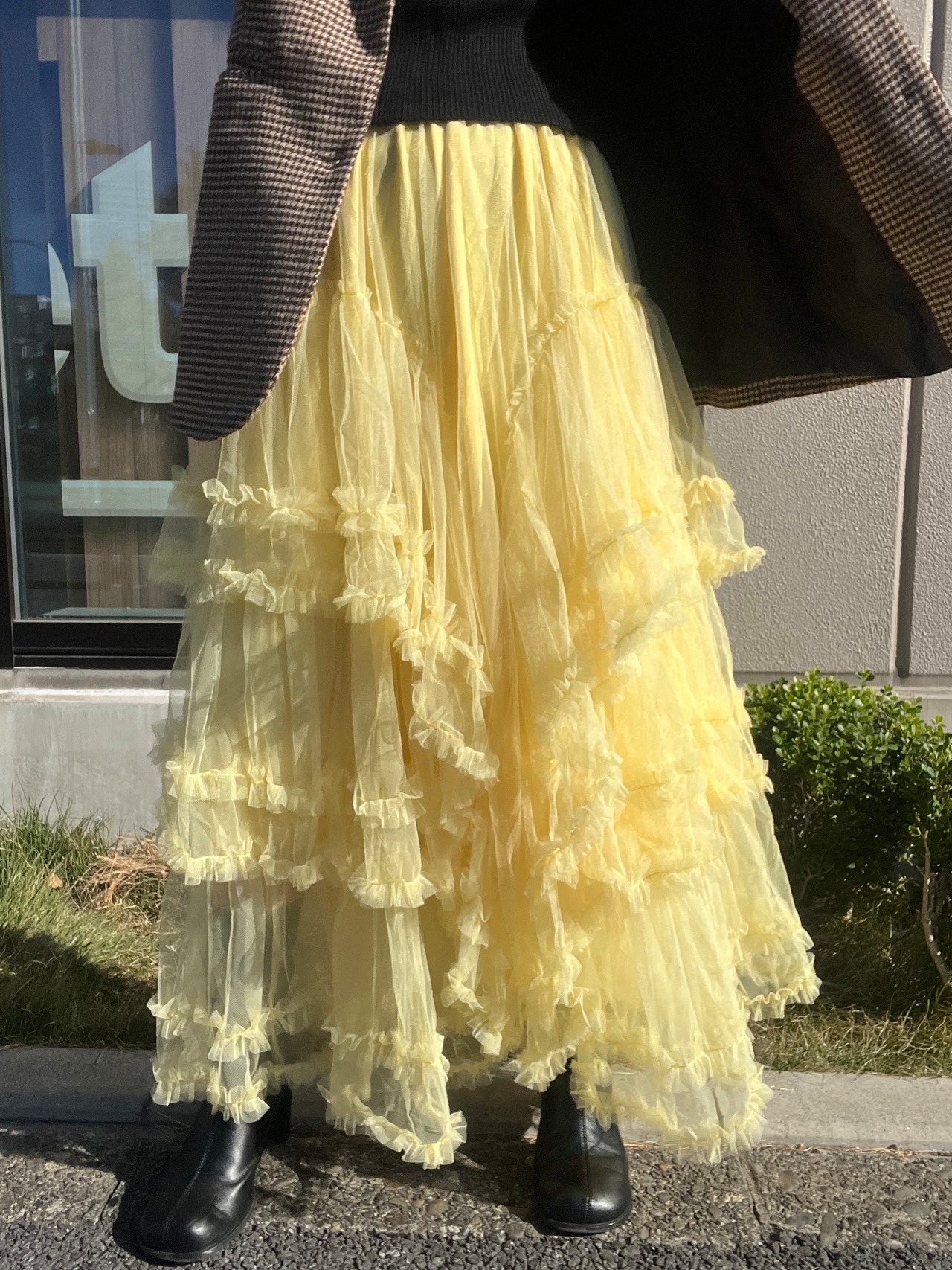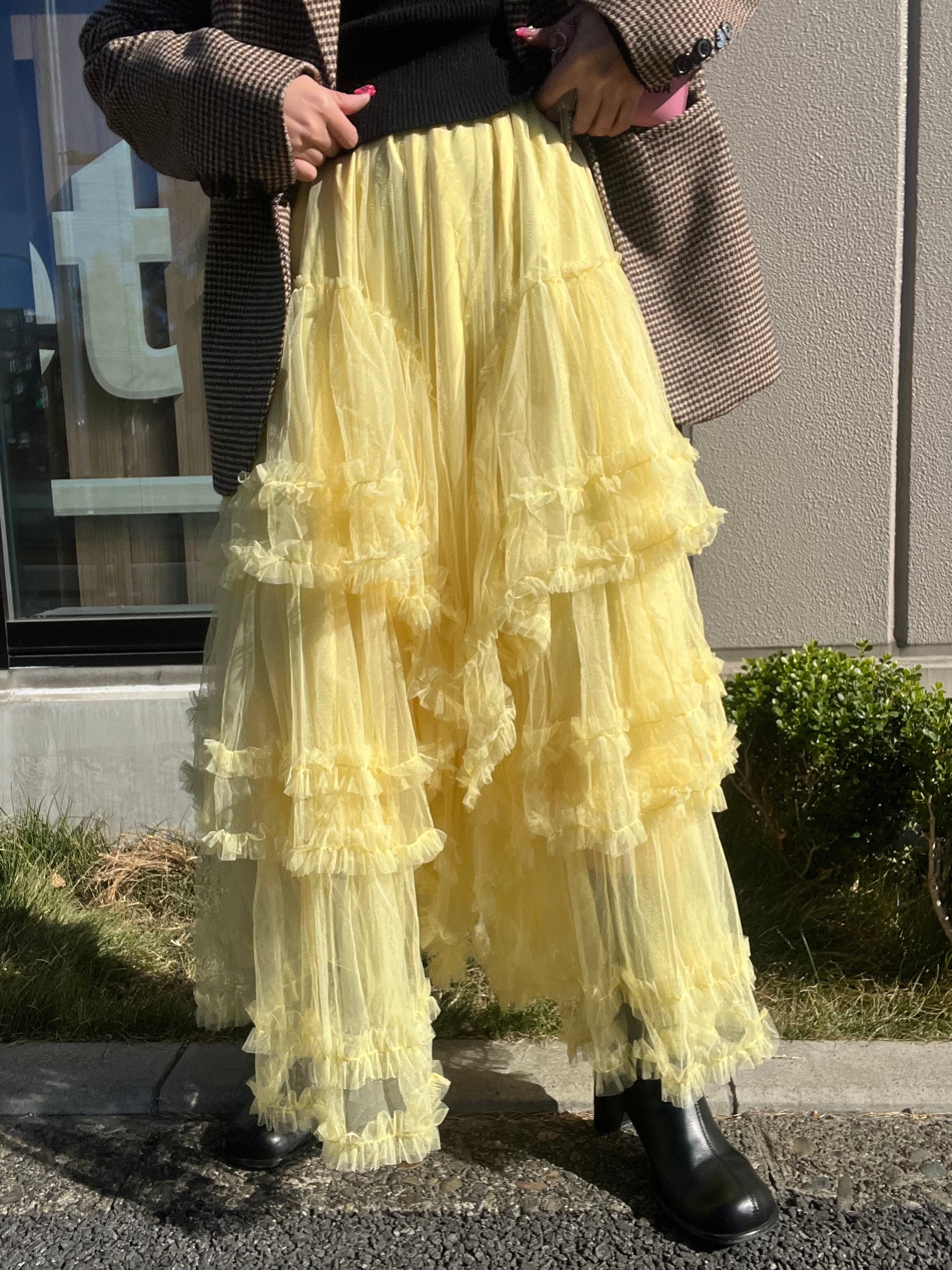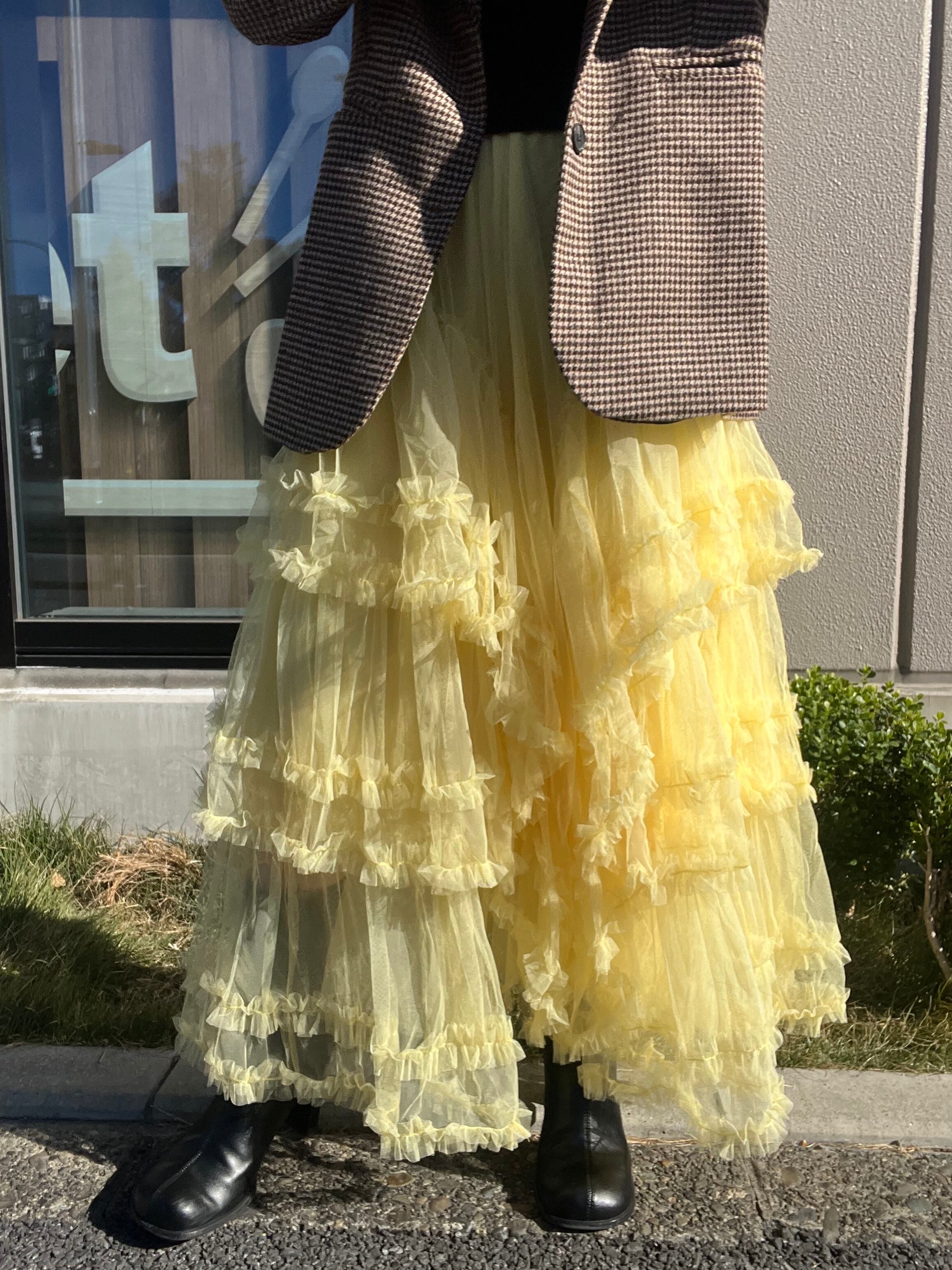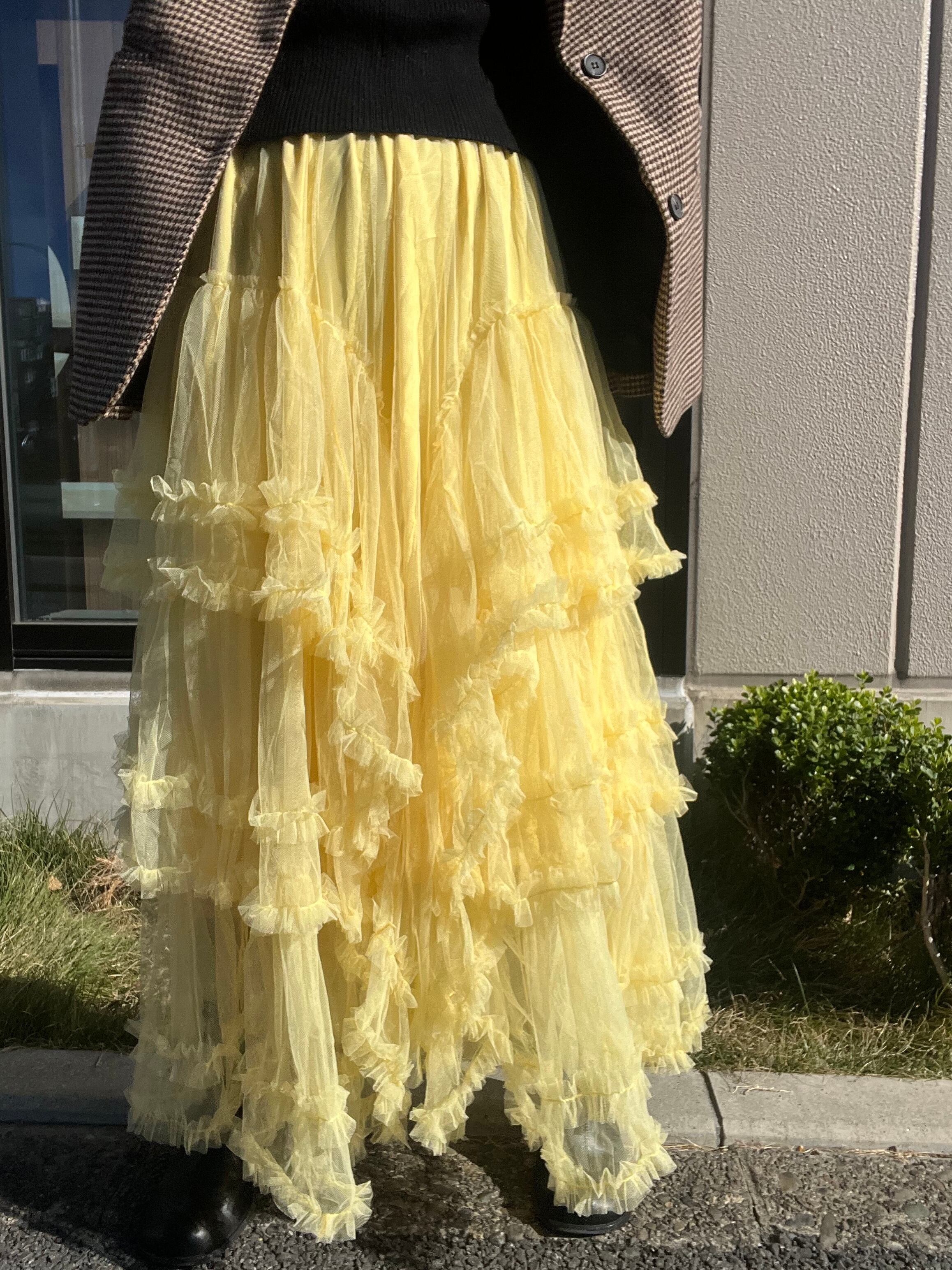 振り返って見てしまうような存在感バツグンのチュールスカート。