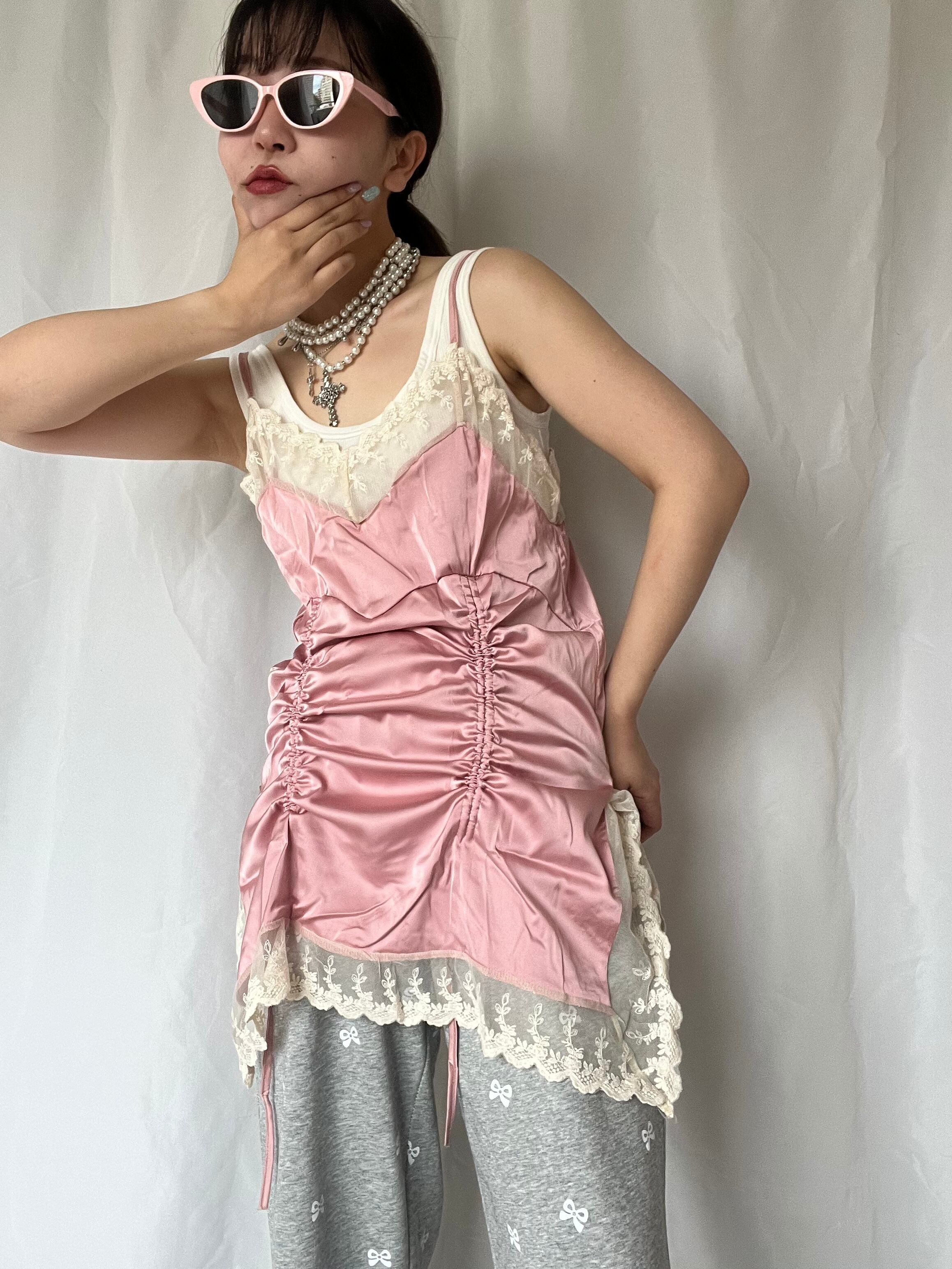 サテンとレースのキャミワンピース