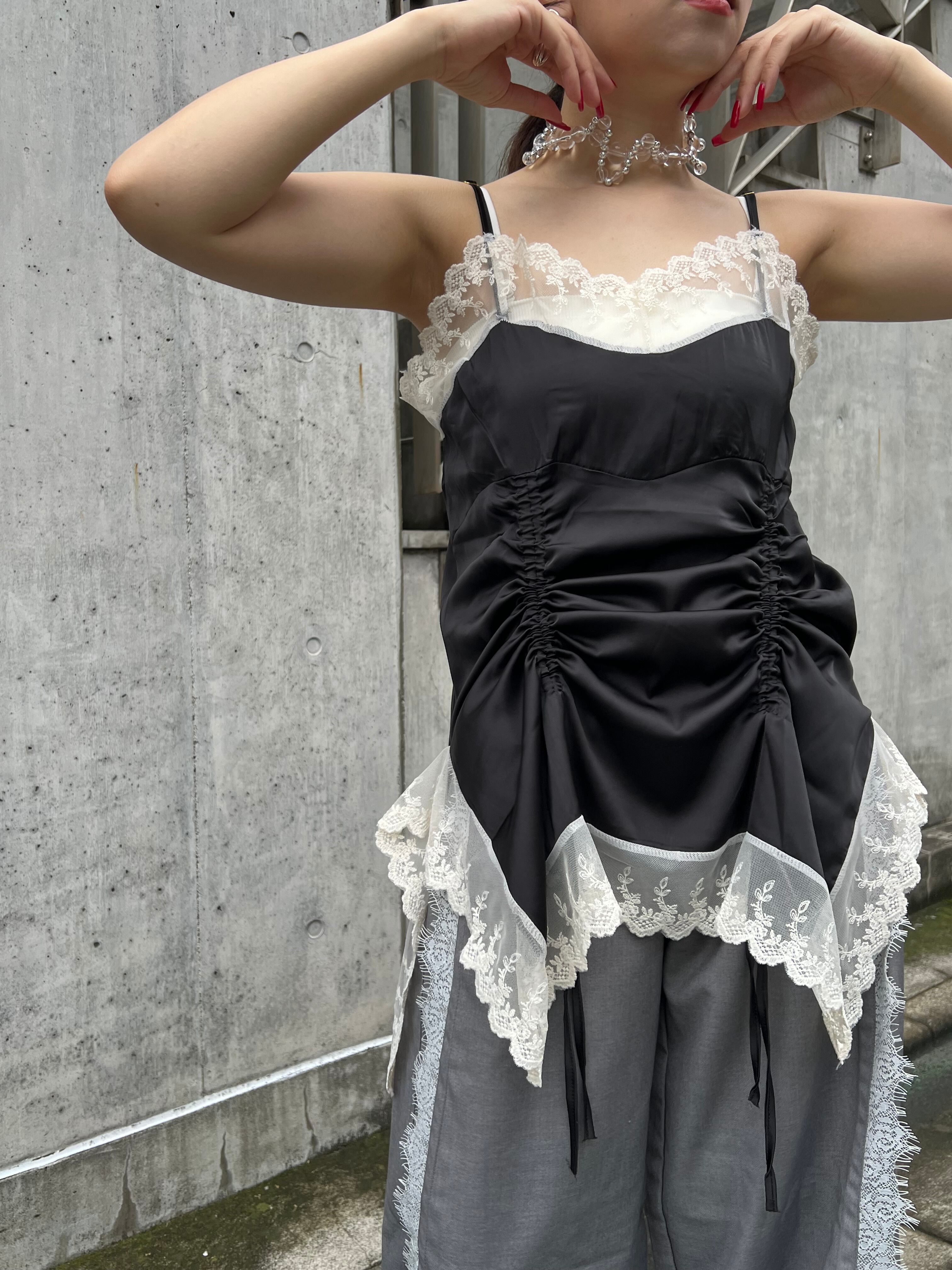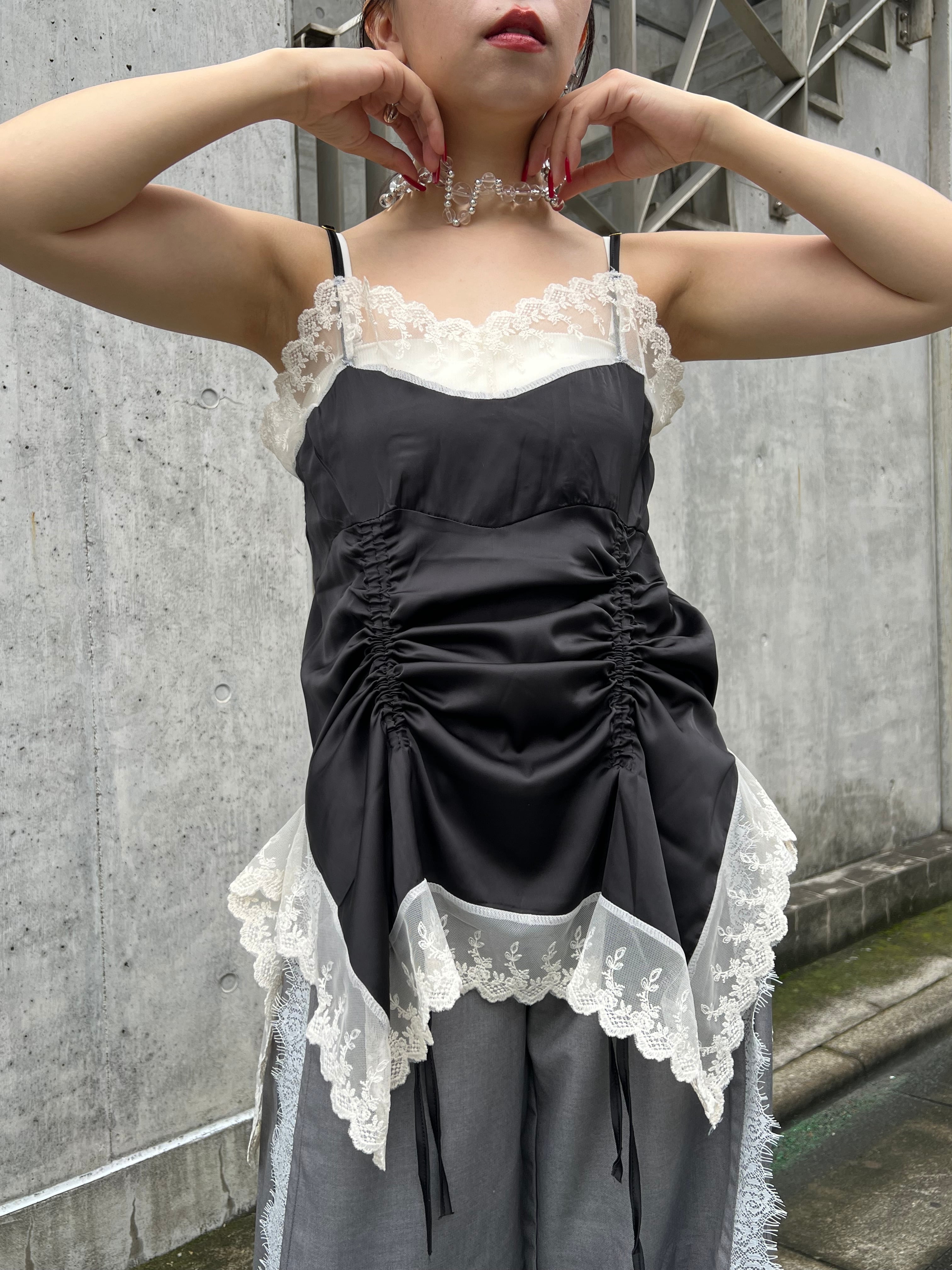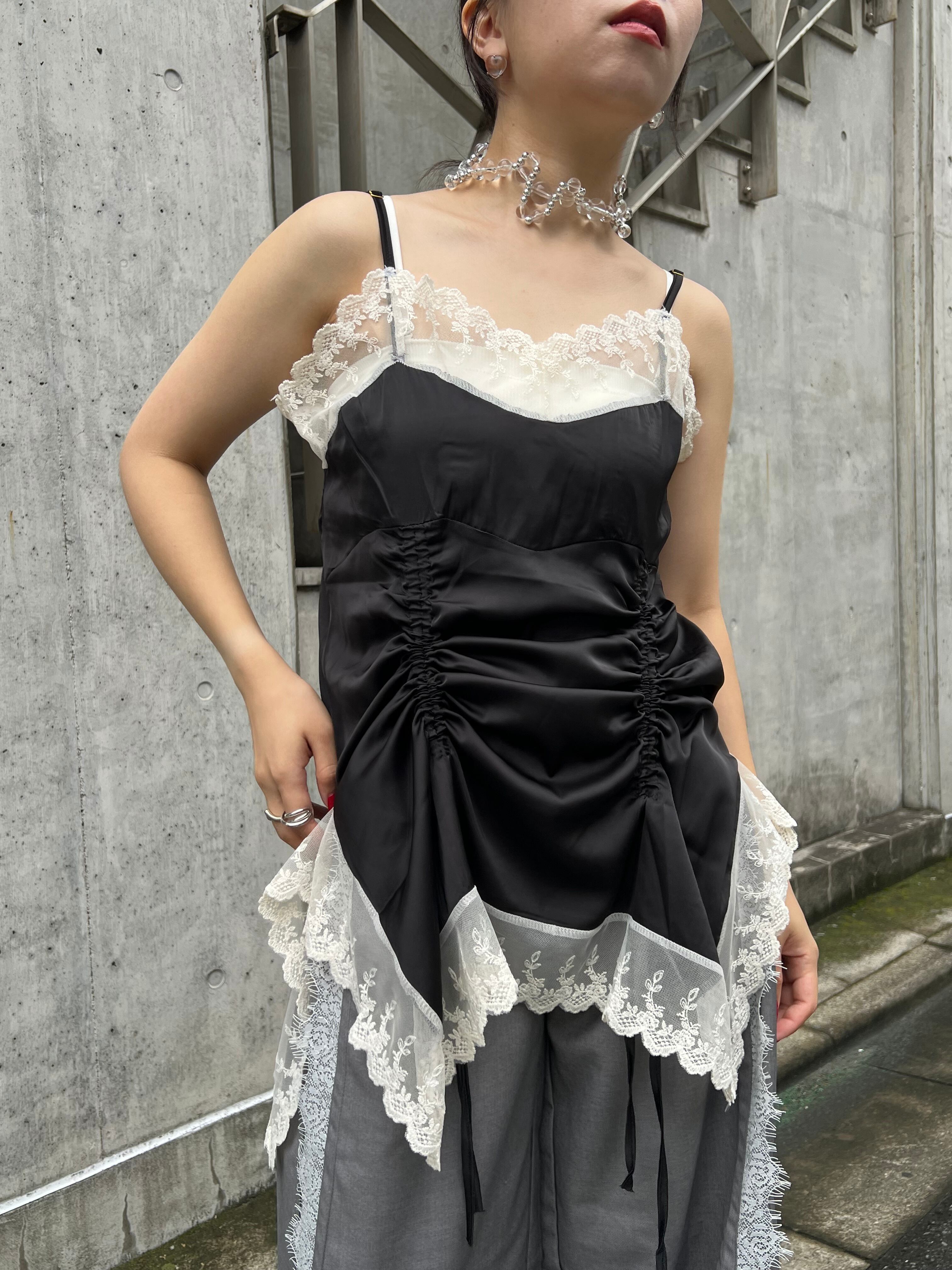サテンとレースのキャミワンピース