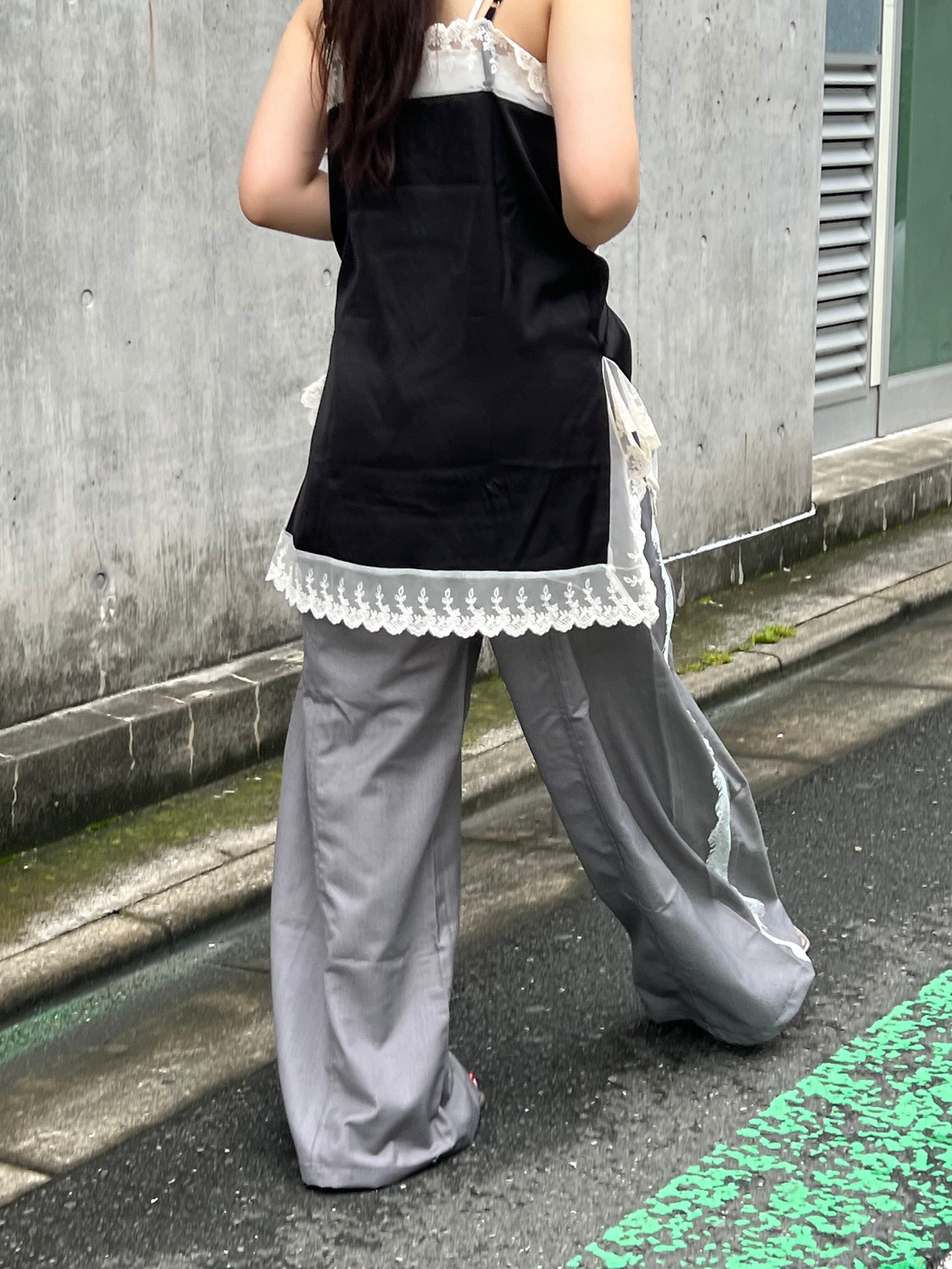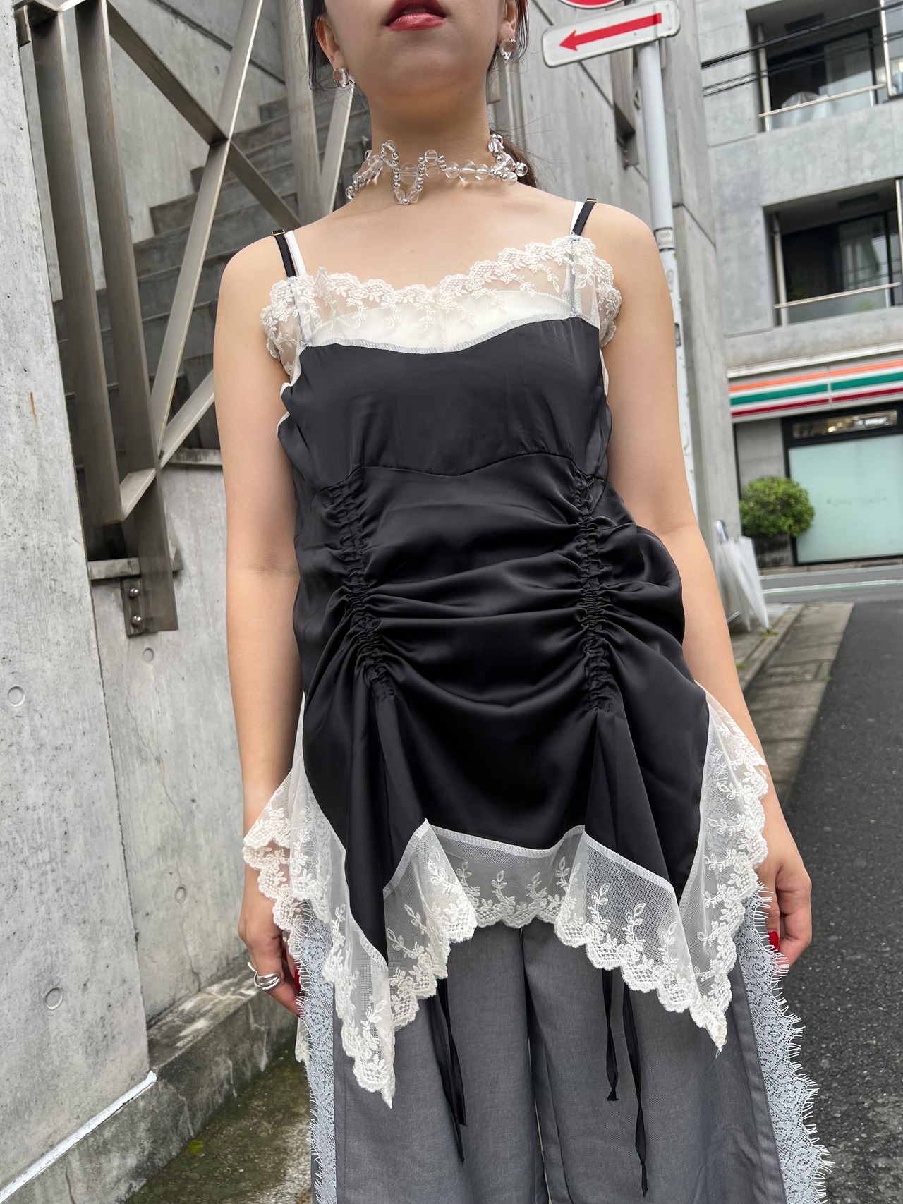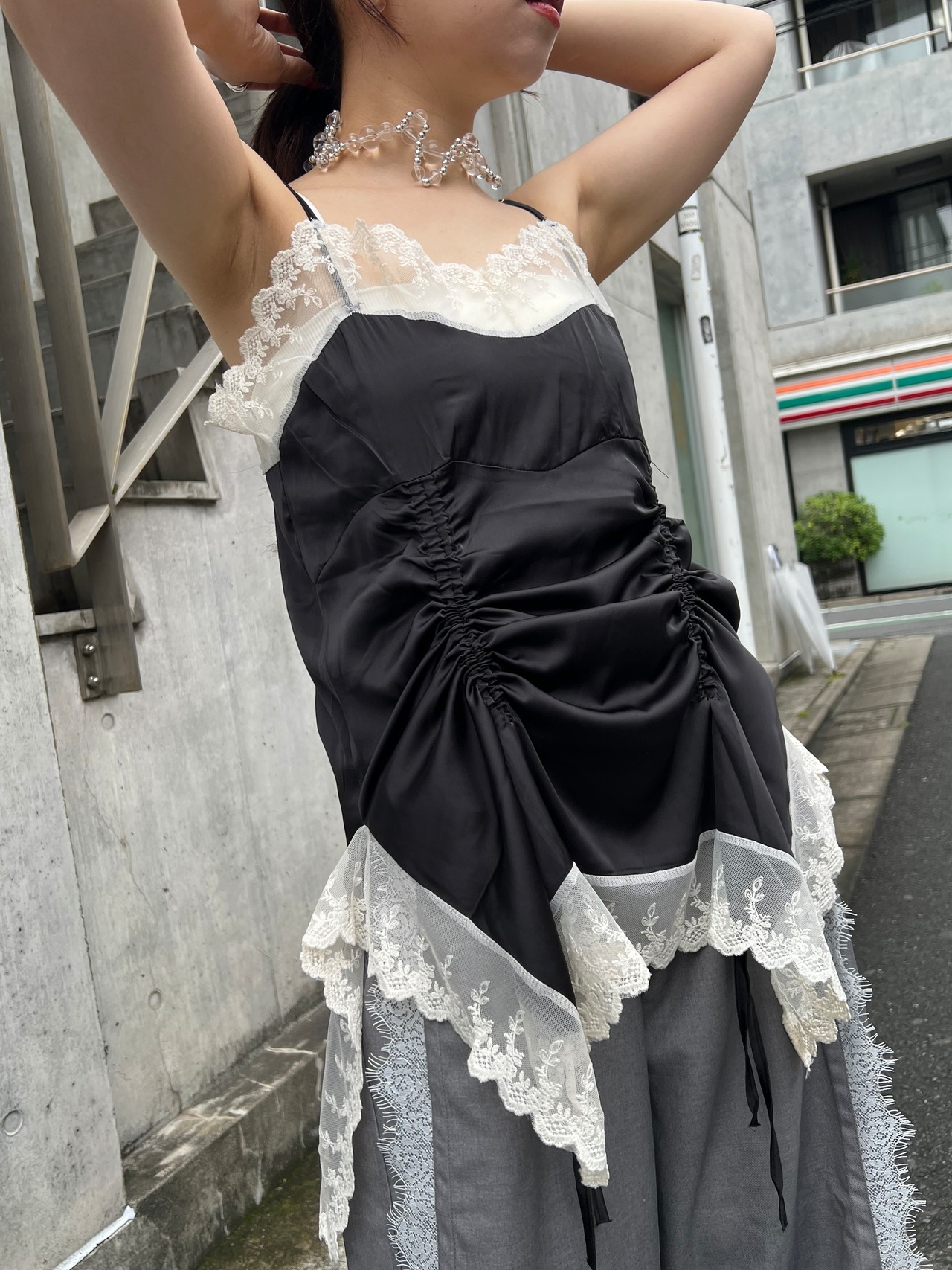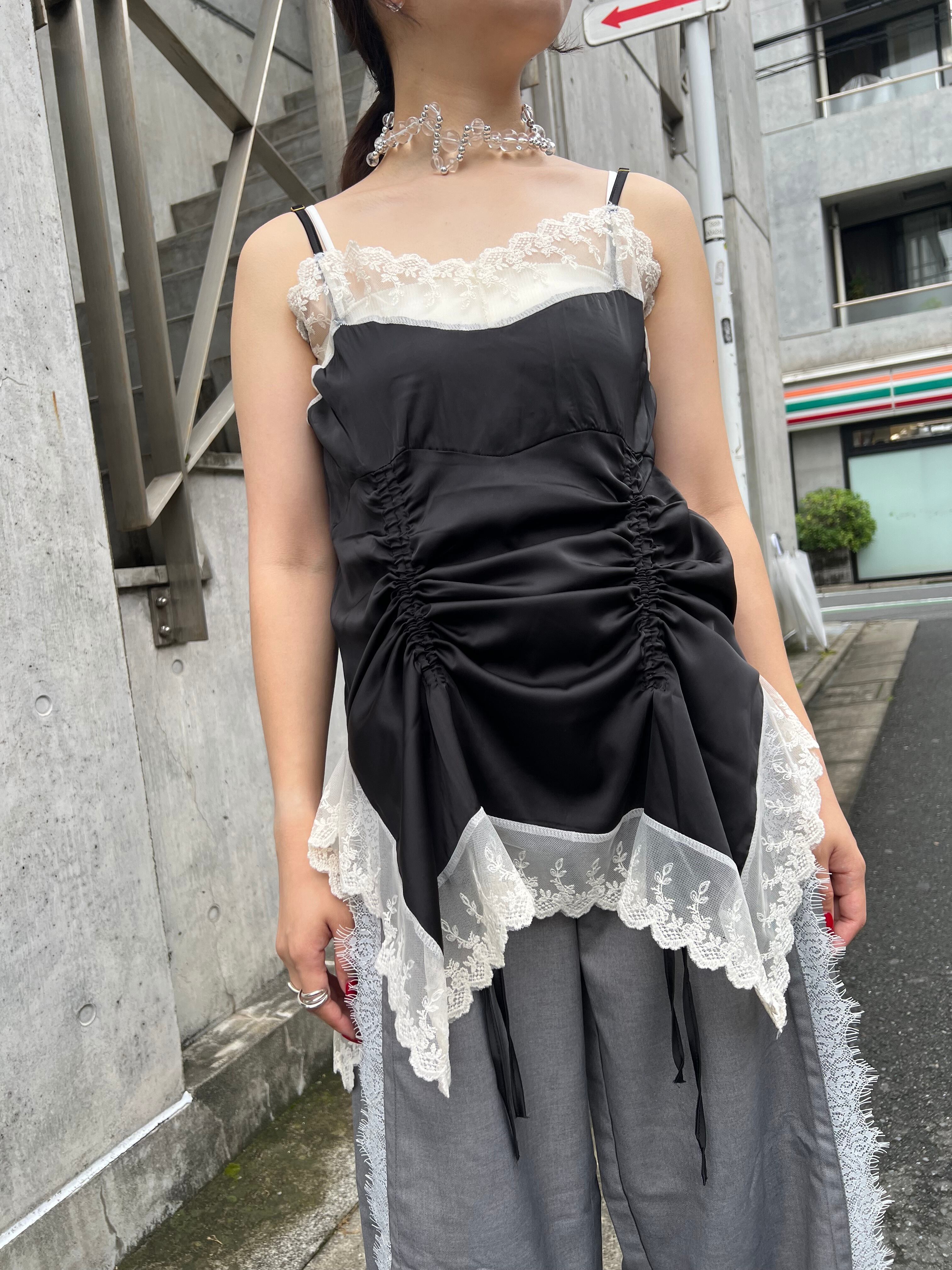 サテンとレースのキャミワンピース