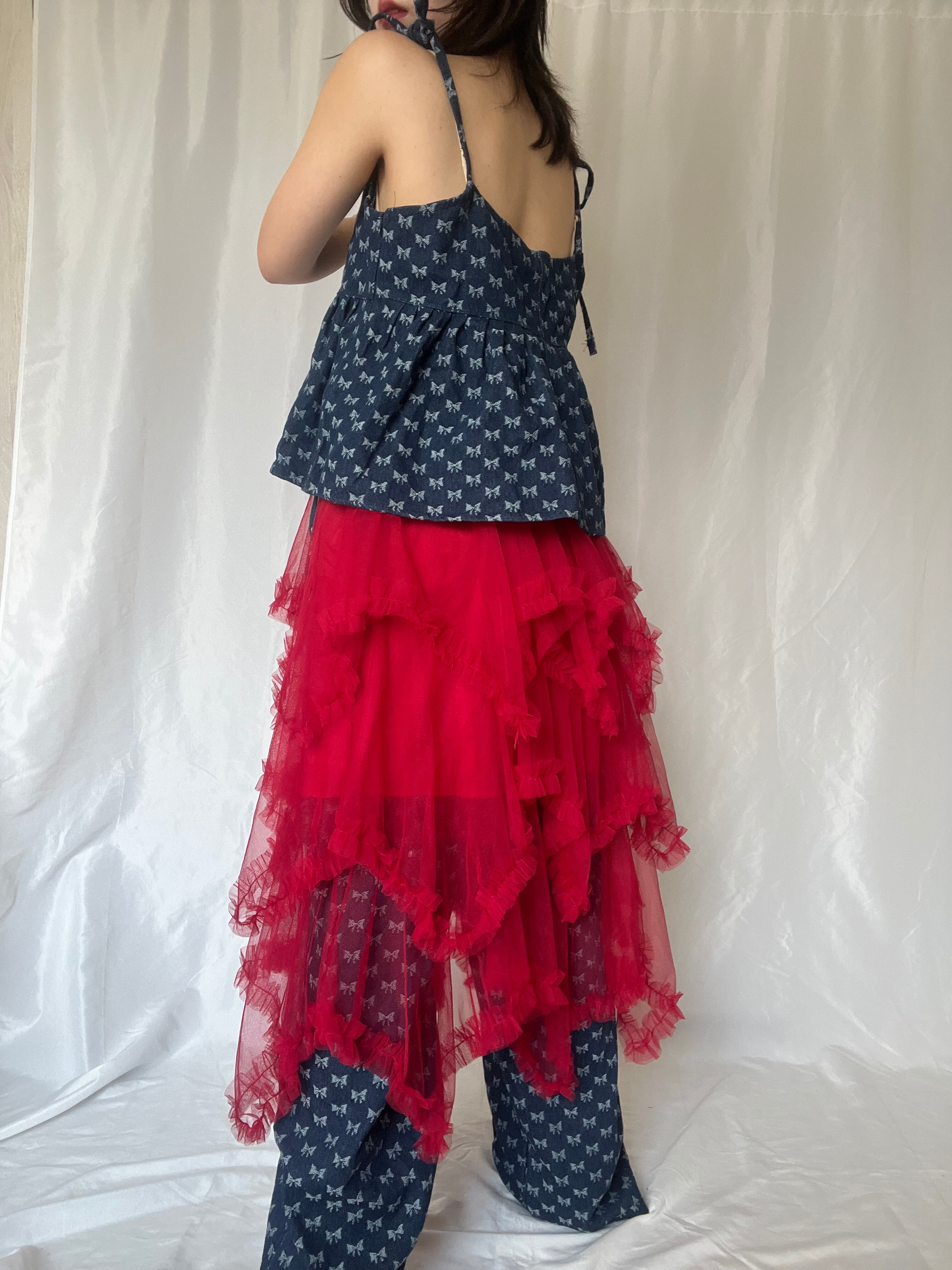 トレンドのレイヤードコーデにピッタリのチュールスカート