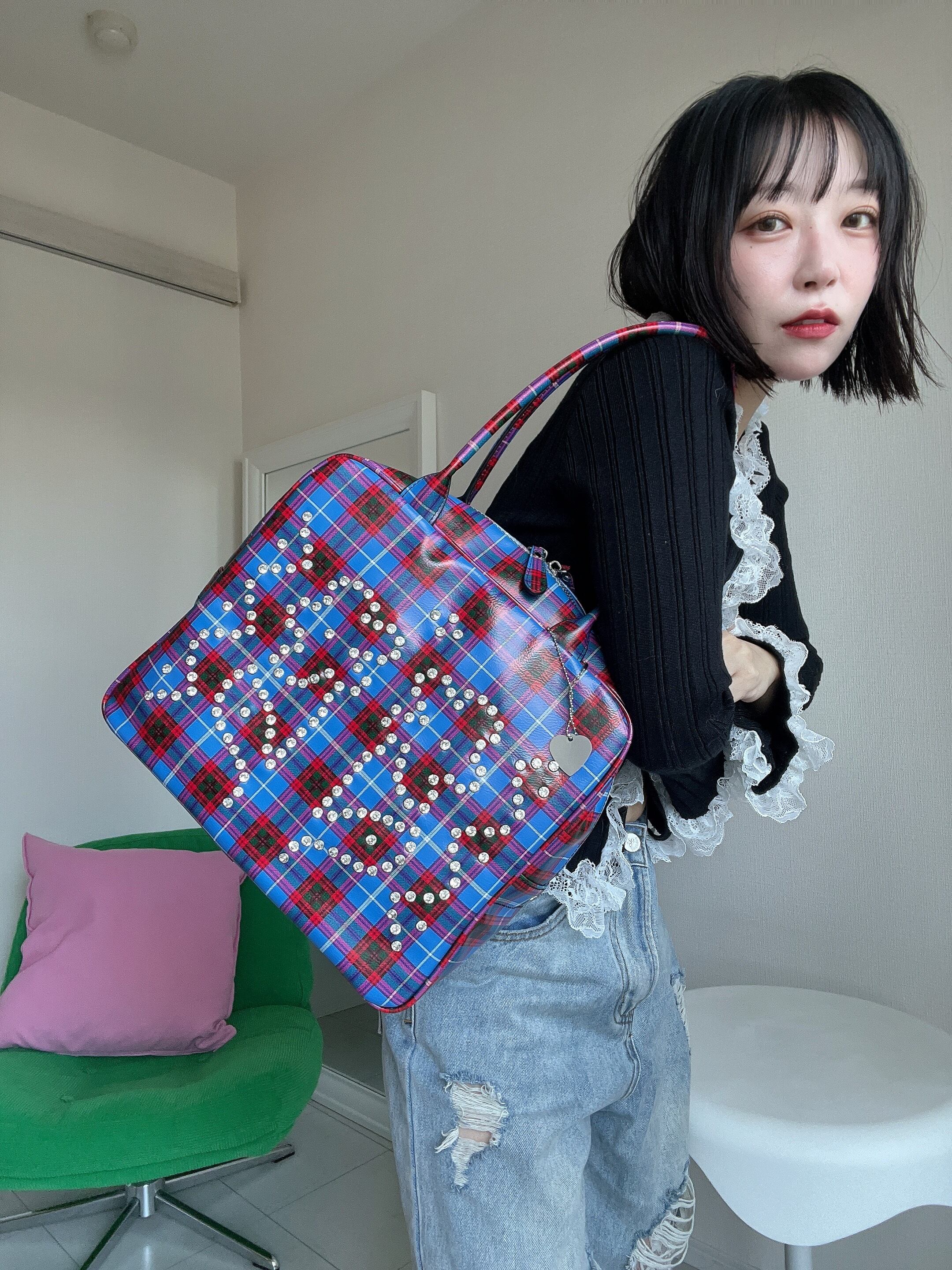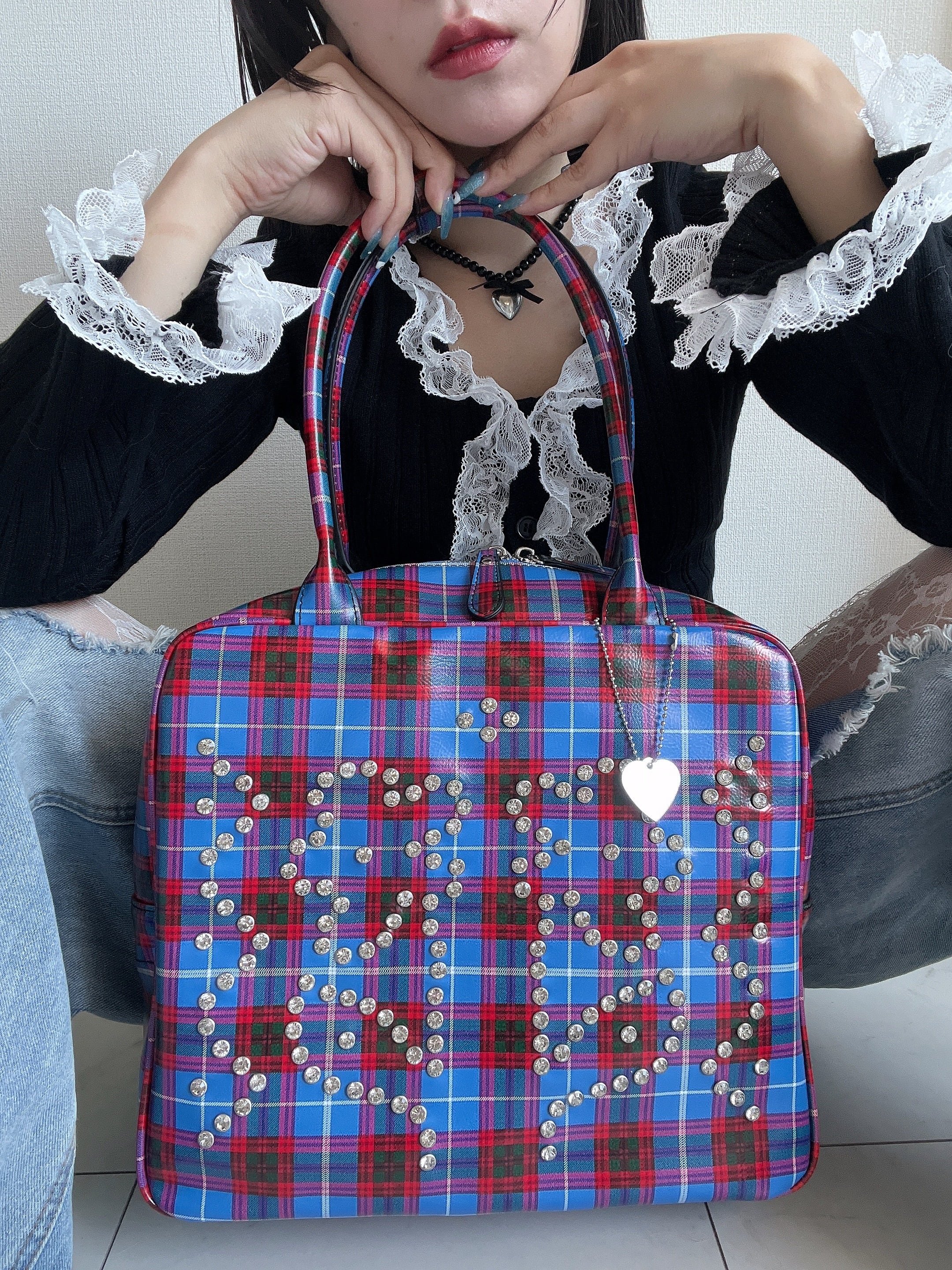 オモテ面に、カシメで留められたラインストーンで絵をかきました。